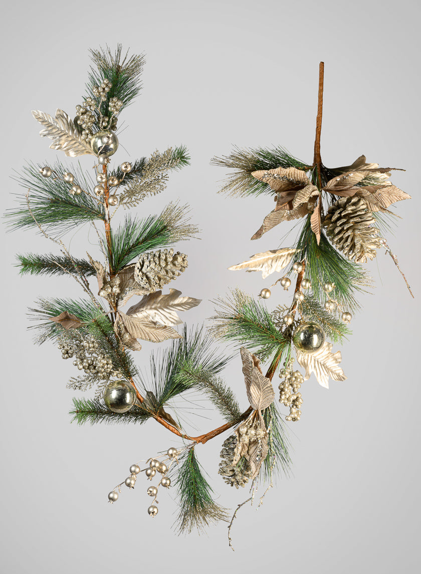 60in Long Classic Pine Garland with Gold Ornaments and Glitter Berries, Case of 4- Regular price