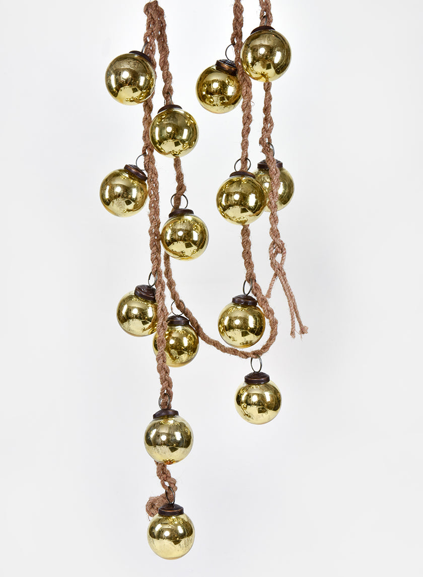 57in Long Mini Gold Ribbed Ornament Ball Garland