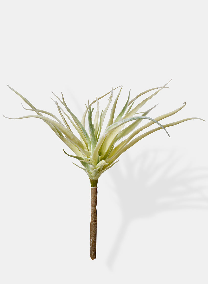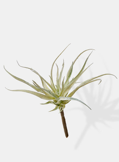 This artificial tillandsia makes it easy to sneak some artificial plants into your floral designs and displays. Work it into a bridal bouquet or into a floral arrangement. This artificial air plant has pale green leaves and comes on a thick brown stem.