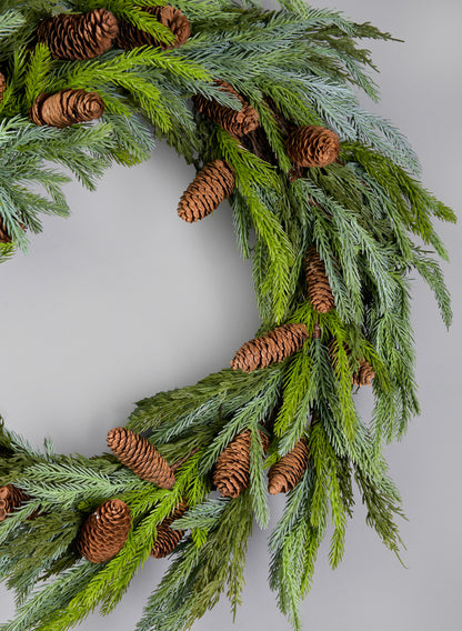 23in Wide Pine Wreath with Pine Cones