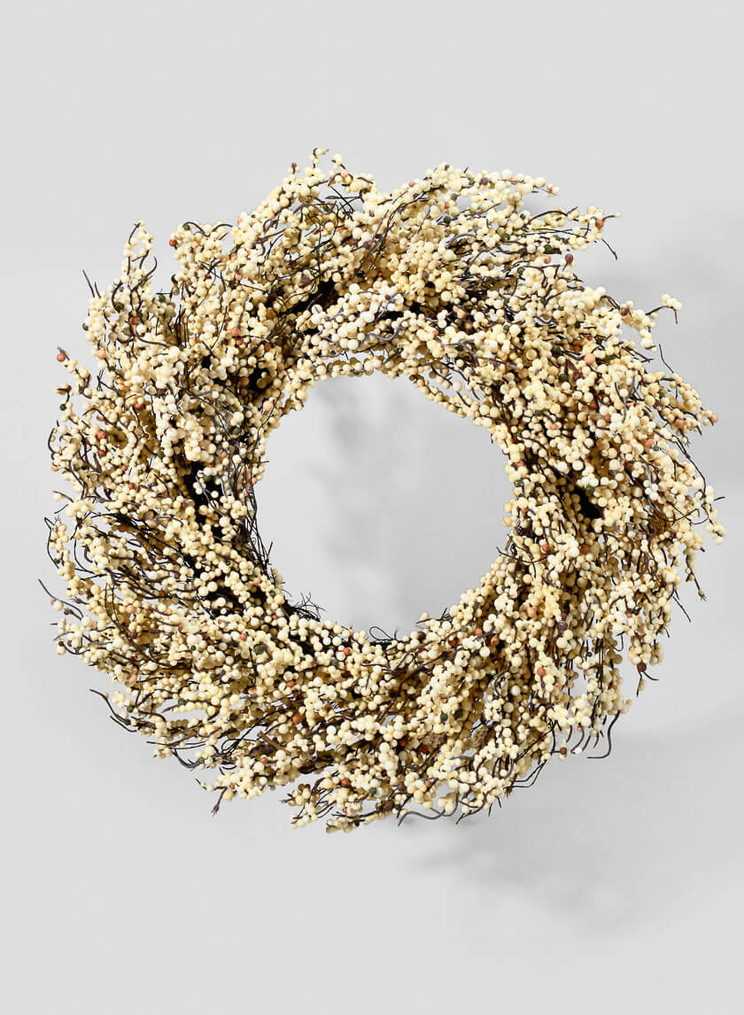 After Thanksgiving, make this faux whiteberry wreath your holiday wreath with a wide, green or red satin ribbon, or velvet if you prefer. Add fairy lights to complete this transformation, and add this coordinating whiteberry garland for a mantel or window.