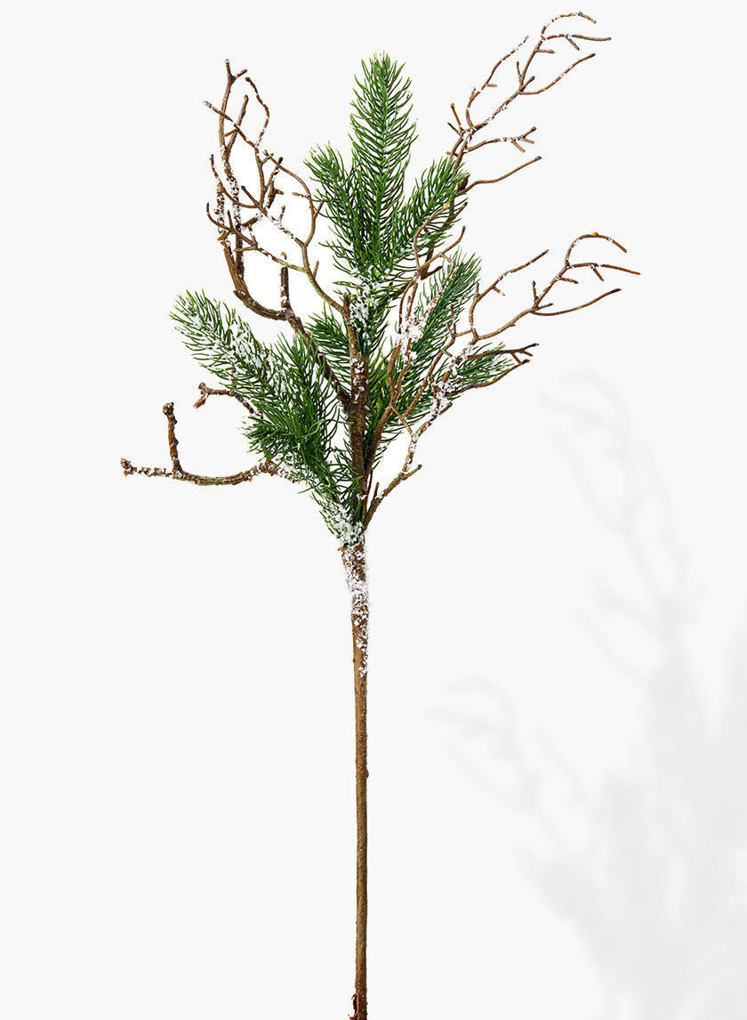 Its frosted needles and rough branches make it great for putting in a vase, on a holiday wreath, or as a table centerpiece. To make a snowy theme, mix it with other seasonal sprays or group multiple stems together.