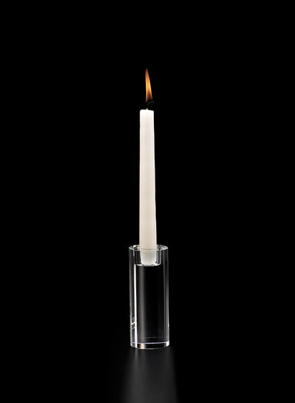 These 5-inch crystal candleholders are compact, easy to clean, store, and transport. They can provide candlelight in varied settings, and the clear crystal blends seamlessly with other decor items. They can also be used with any color scheme, and touches of color can be included using colored taper candles. The simple elegance of this candleholder makes it suitable for use at parties, holidays, intimate dinners, and religious or spiritual settings.