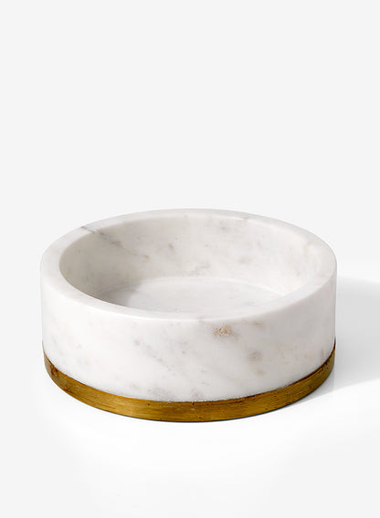 This White Marble Bowl with a Brass Ring will be the perfect finishing touch to any event, radiating an air of understated elegance that is sure to turn heads. It has multiple purposes: as an elegant serving dish, a gorgeous centerpiece, or a catch-all tray.