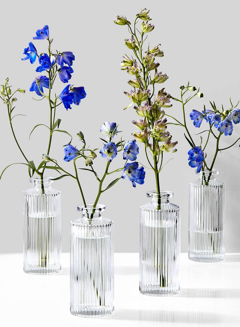 Jamali Garden is your one-stop shop for premium-quality items for every event, theme, or mood. Our huge collection of exquisite ornaments from around the world offers customers solutions to their design needs. Shop our clear pleated glass bottle bud vases online today. Get them in a set of four or a case of six for bigger discounts.