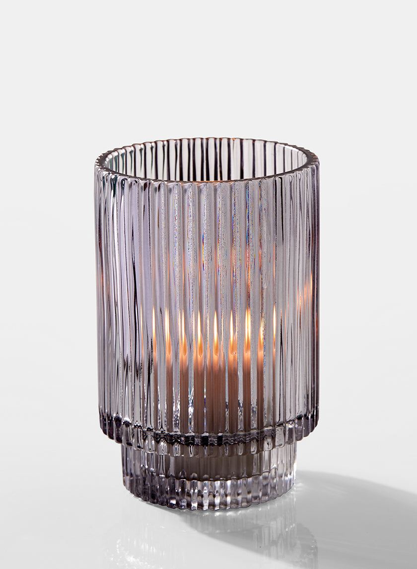 5in Tall Smoke Pleated Glass Votive Holder