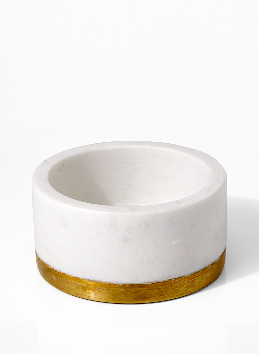 4in Wide White Marble Bowl With Brass Ring