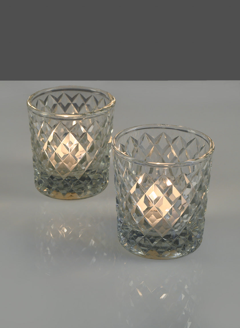 4in Tall Silver Corrugated Glass Votive Holder- Regular price