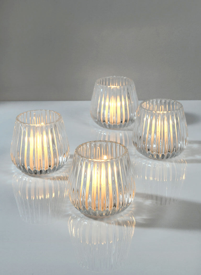 2.5in Tall Blue Fluted Glass Votive Holder, Set of 4