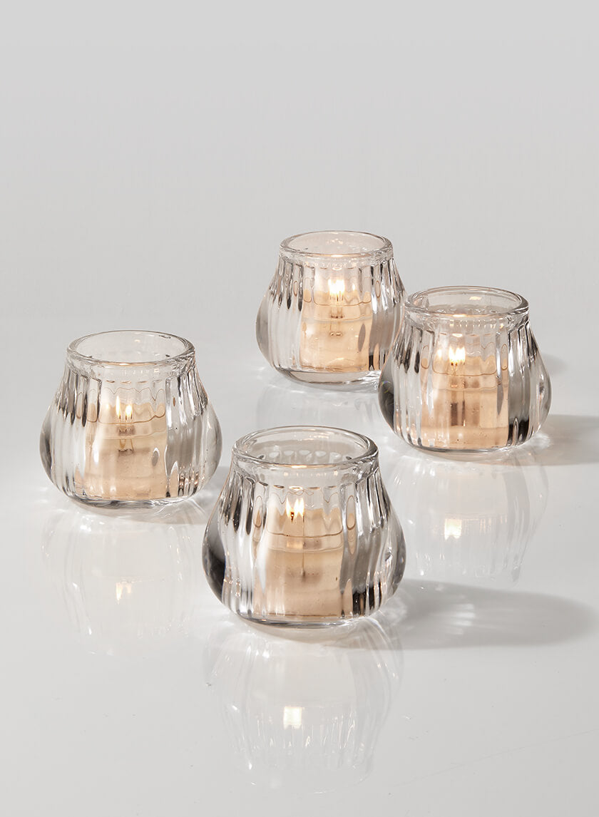 5in Tall Ribbed Antique Silver Glass Votive Holder, Set of 4