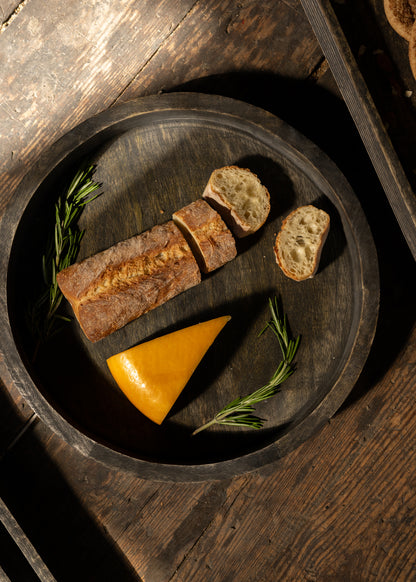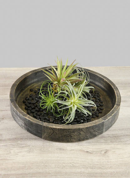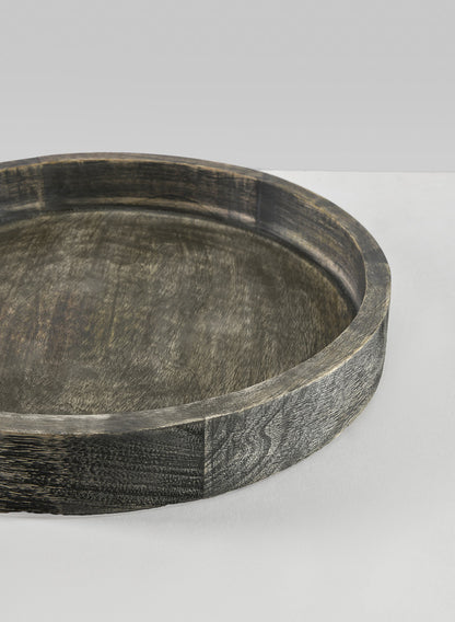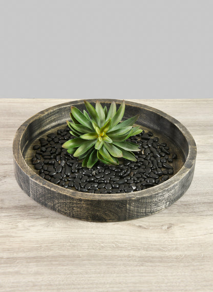 Transform every event experience with the exquisite 14-inch Belgham Brushed Black Round Tray. The spacious surface enables an impressive presentation. Its sleek design and brushed black finish beautifully contrast with vibrant colors and textures. Use it as a stylish base for candles and decorative plants; it is also perfect for culinary creations, creating an inviting focal point during your dining gatherings. With mango wood from Mangifera indica, this tray ensures a food-safe, natural serving surface. Add this to your occasion and turn simple moments into lasting memories!