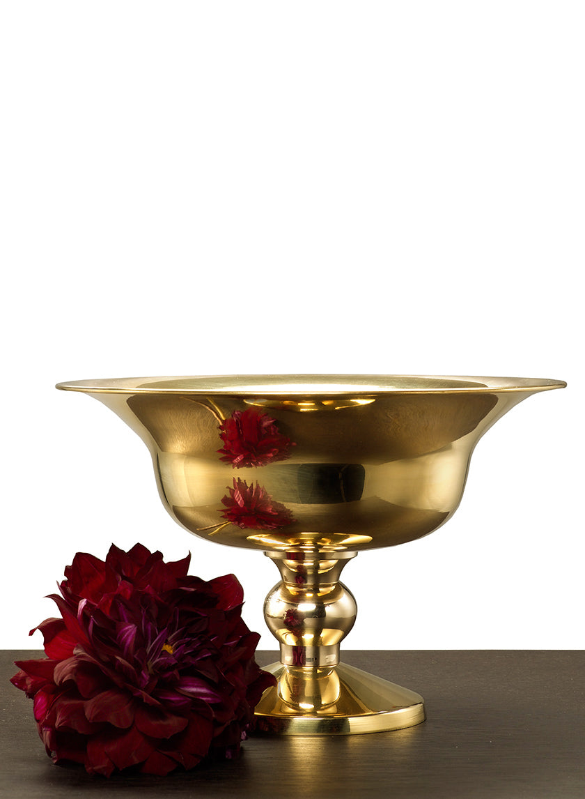 A solid brass piece with a wide, curvy design, this beautiful urn is perfect for big blooms, low flower arrangements, pomanders, and so much more. Polished with a golden finish, it lends a subtle shine to its surroundings — a timeless yet trendy addition to any theme.