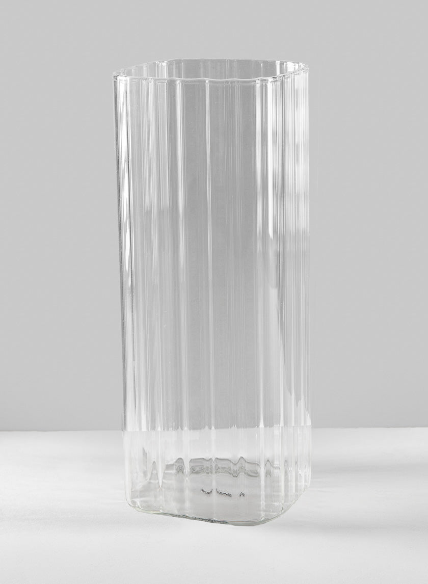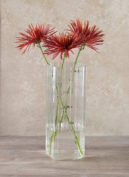 10in Tall Vendome Rounded Square Ribbed Glass Vase