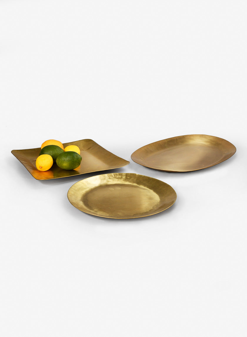 Emphasize the classic and antique vibes of your decor with this artisanal, beautifully crafted, round raw brass tray. The natural depth of the golden brass color of this unpolished metal makes the tray an excellent addition to any white, gold or antique themed event. The raised edges of this tray also add practicality and functionality to this decor piece. Handmade and shaped using the hammering technique, this tray will vary slightly in form and size from piece to piece.