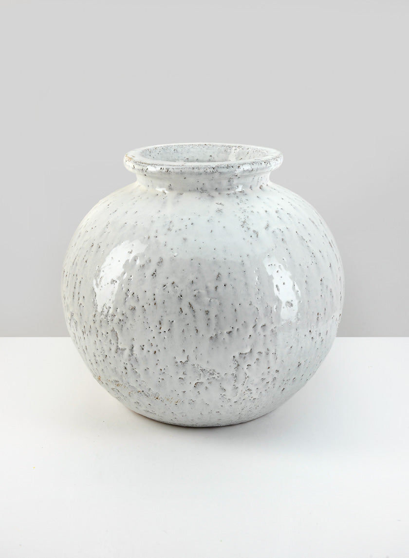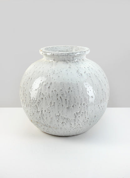 11.5in Wide Lebes Aged White Garden Urn