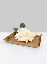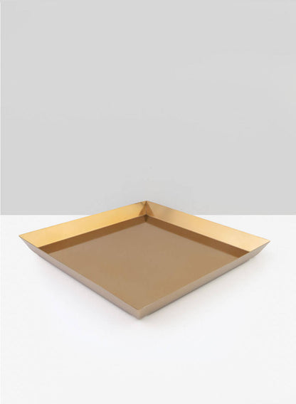 Trays are versatile, perfect for everything from serving to display. This metal tray has a rich, shiny gold finish. Fill it with pillar candles for a table centerpiece, use it to hold glass bottle testers for a perfume counter when doing retail displays, or let it hold a mix of faux potted succulents and plants for a table at home or for a store window display.