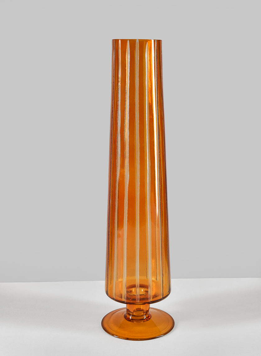 13in Tall Faris Amber Pedestal Glass Vase
