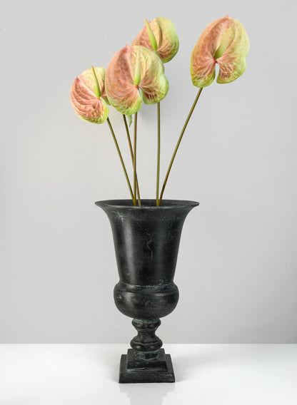 The elegant Aged Bronze Urn, a statement item that mixes classical design with a beautiful antique finish, will enhance your home or event garden. From modern interiors to classic gardens, its graceful shape with a flared rim and sculpted pedestal base adds ageless beauty and charm to every space.