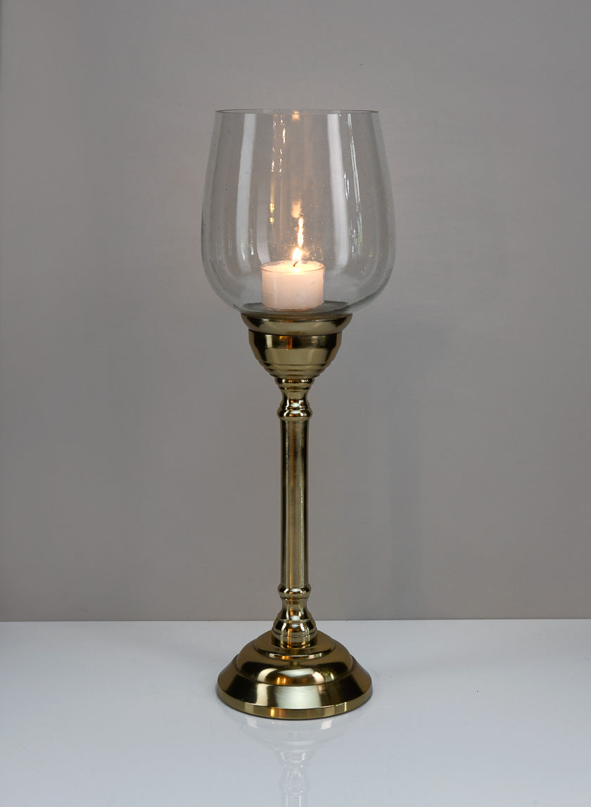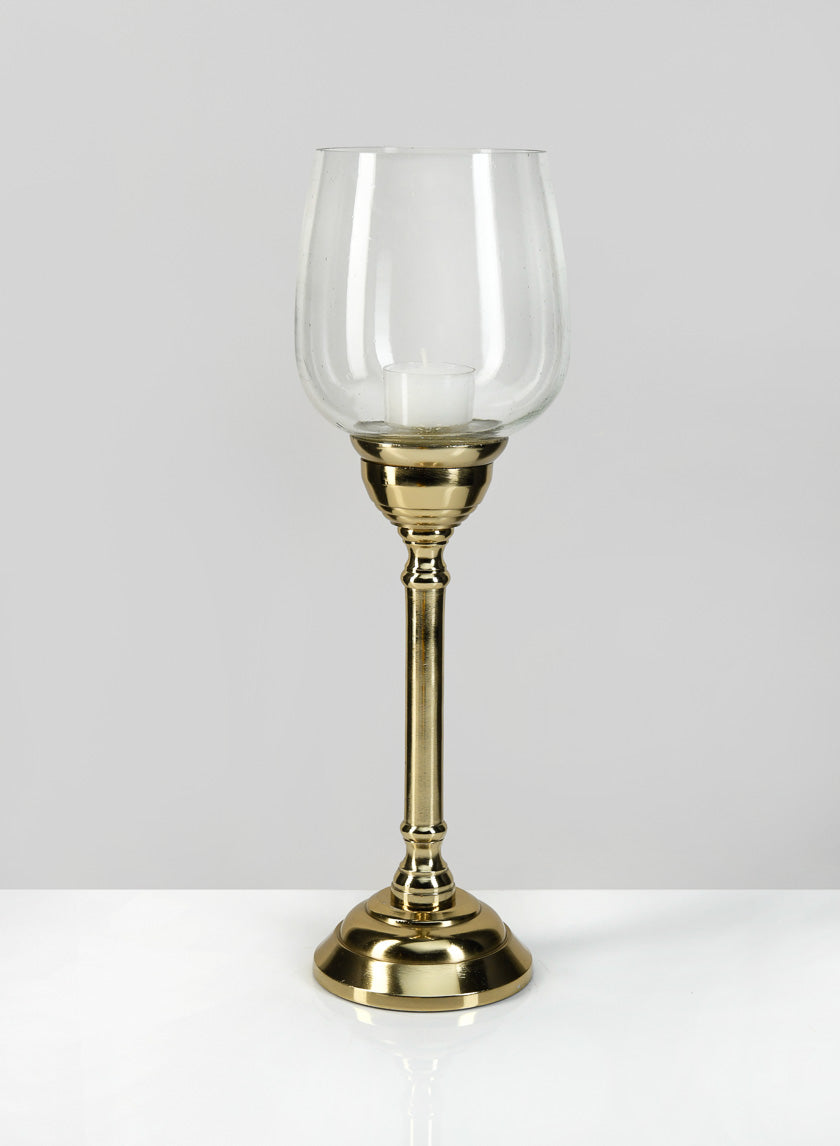 A stunning addition to any event, the Petra Gold Candlestick with Glass will cast a warm and inviting glow. Crafted from top-notch materials, ensuring that it will endure frequent use without losing its beauty. Perfect for a wedding, a romantic supper, or a celebration. Available in a smaller 12-in size.
