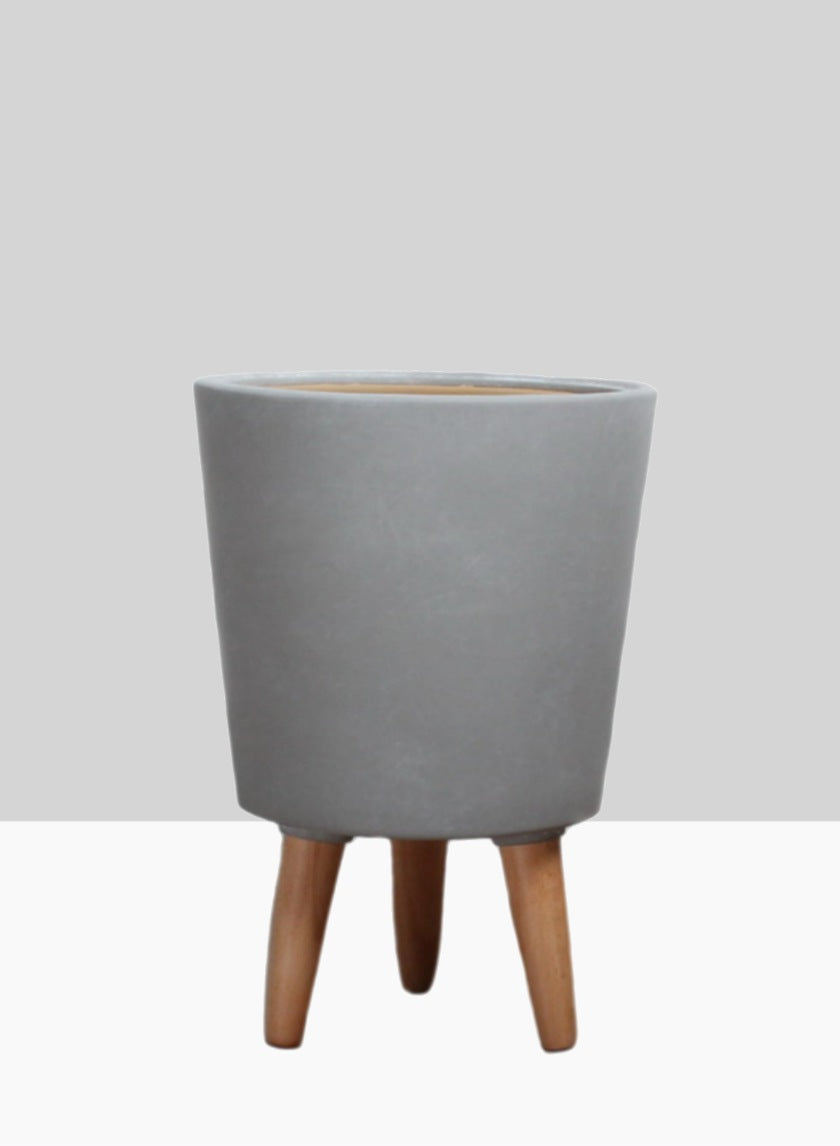 14.5in Tall Vaso Grey Ceramic Pot With Wood Legs