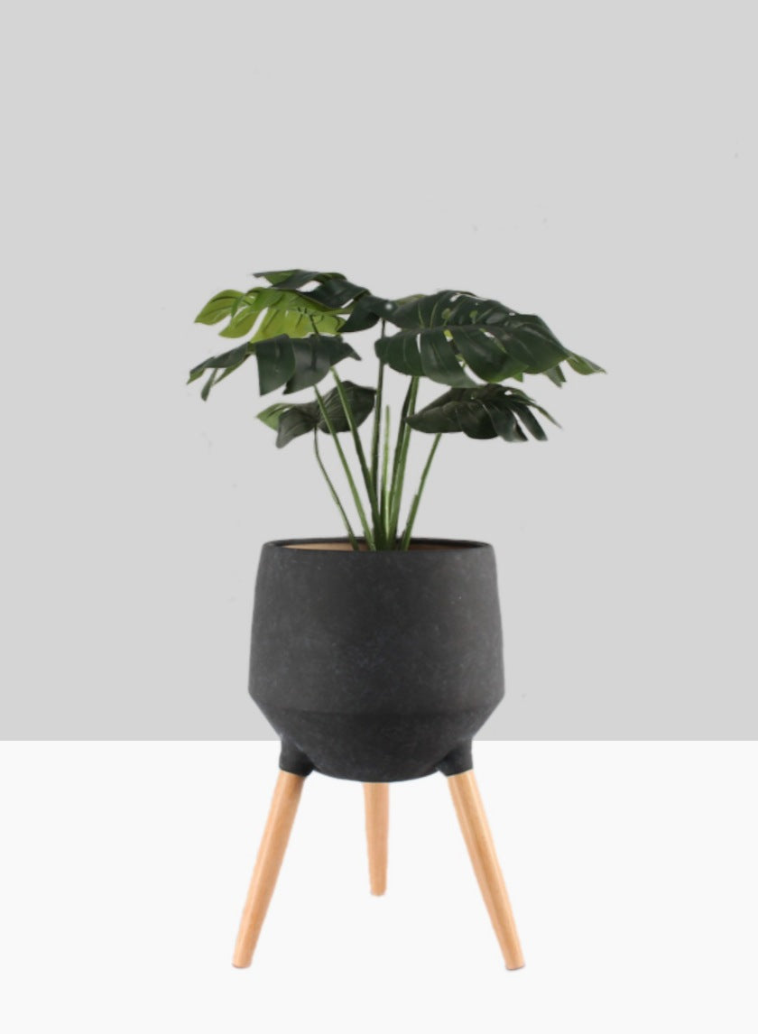 Combining minimalist design and modern use, the Breakers Black Ceramic Planter with Beech Wood Legs. The matte black ceramic finish combined with the natural beech wood legs produces a sleek, modern appearance that goes well with any decor. From trendy events to elegant offices, its adaptable style fits perfectly in many settings.