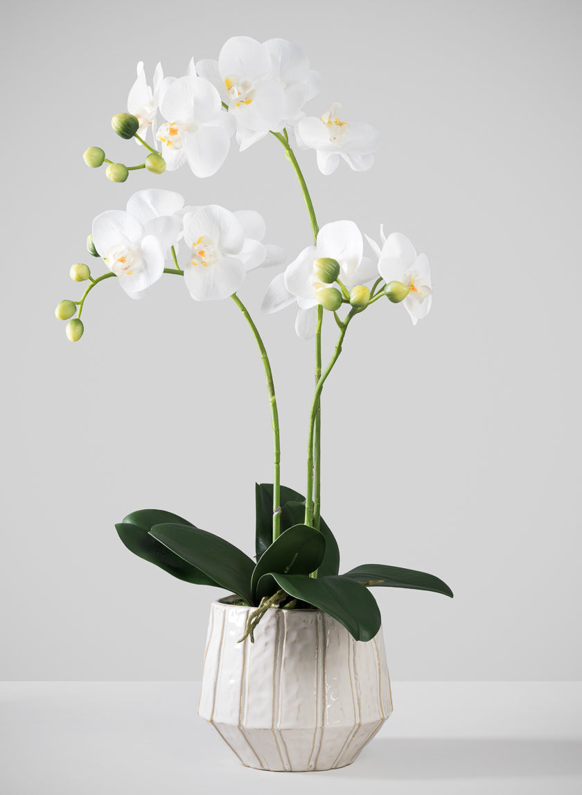 23in Tall Real Touch 3 Stem Blooming Orchid Phalaenopsis in Decorative Ceramic Pot