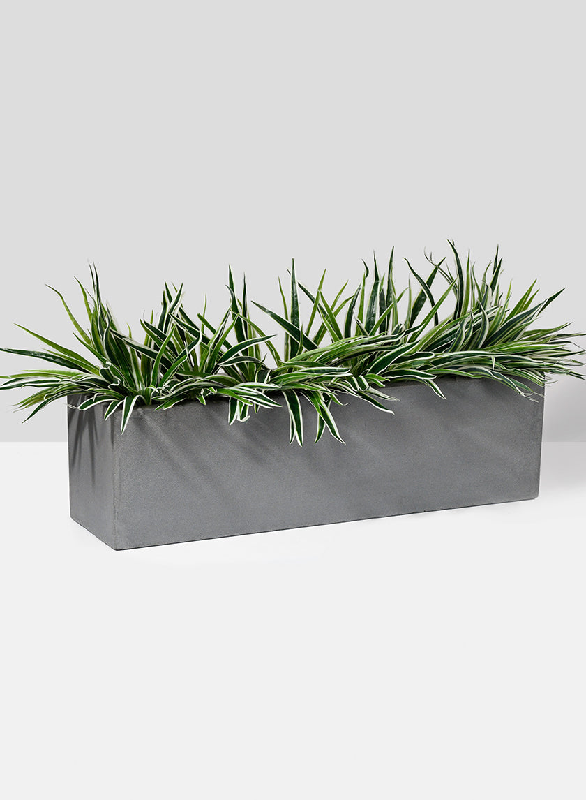 This grey fiberstone planter is perfect for indoor, outdoor plants and can be used in a patio, pathway, garden, or your home. Fill it with luscious blooming flowers, succulents, or plants to create a stunning centerpiece for a wedding, or event. This window box is made from fiberglass and stone and are lighter than their stone sisters, but still look and feel the same.