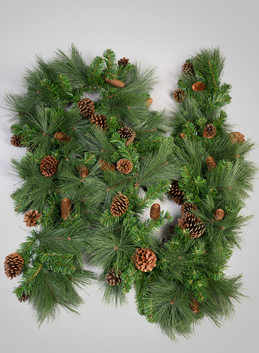 115in Long Hard Needle Garland, 35 Pinecones, 195 Tips