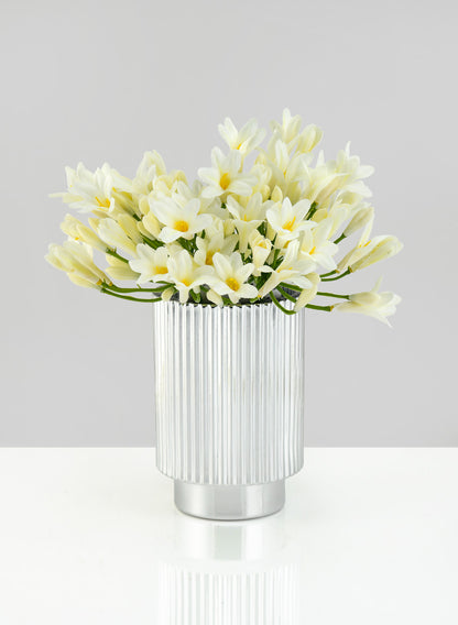 Add the Ombre Gold Glass Fluted Bud Vase or Silver Pleated Glass Votive Holder to your order—it’s available for separate purchase.