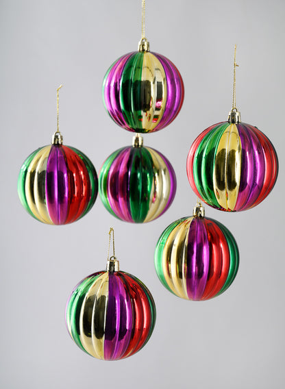 The Colorful Hand-Painted Plastic Pumpkin Balls Set will add fun and color to your holiday celebrations. Features in bright colors and fun designs that will make you smile. It has a beautiful range of vibrant colors, such as deep purples, bright greens, rich reds, and shiny golds. Each is painted by hand with care, making sure that it has a distinctive and high-quality finish. Made of strong plastic and have a rounded, striped pattern that makes them stand out as statement pieces on your tree or display.