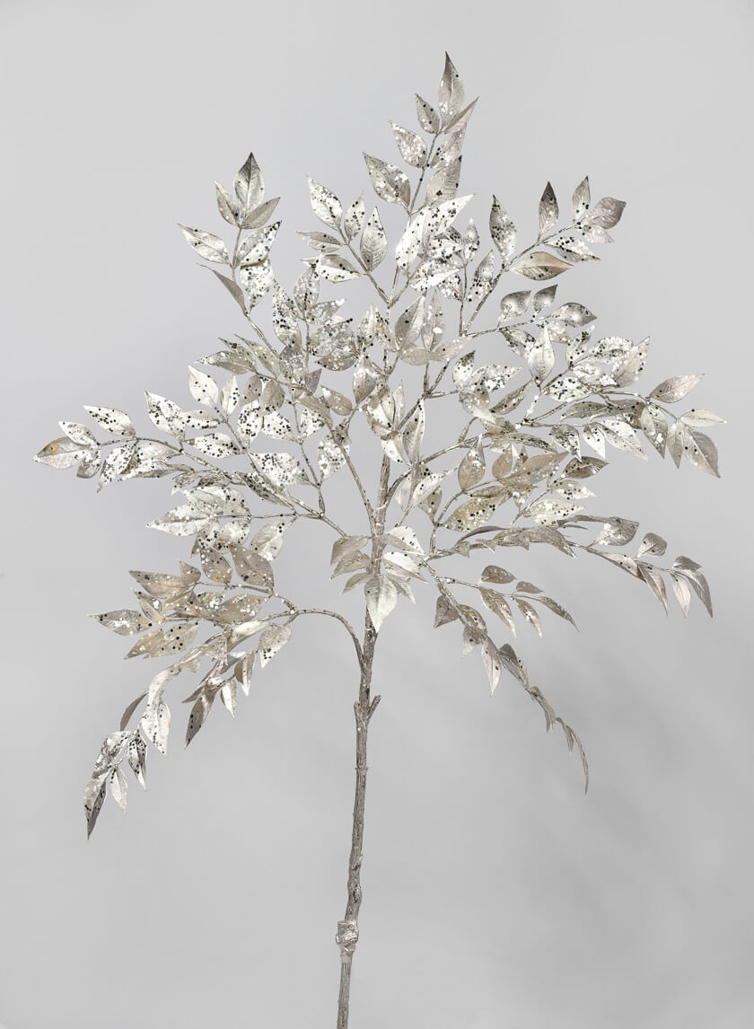 It has beautifully stacked leaves covered in a light champagne metallic finish with tiny glitter accents. Put it in tall vases, mix it with flowers and evergreens for fancy centerpieces.