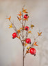 Our stunning 38-inch Late Fall Young Pomegranate Branch! This branch is perfect for creating captivating centerpieces. Enhance floral arrangements or display it on its own in a decorative vase. Its sturdy yet flexible stem makes it easy to shape according to your design preferences. Perfect for adding a burst of color to your home or giving as a unique gift, it brings the warmth and charm of the season. A maintenance-free branch that stays vibrant and fresh forever. Order yours today and elevate your space with this perfect addition to your seasonal decor.