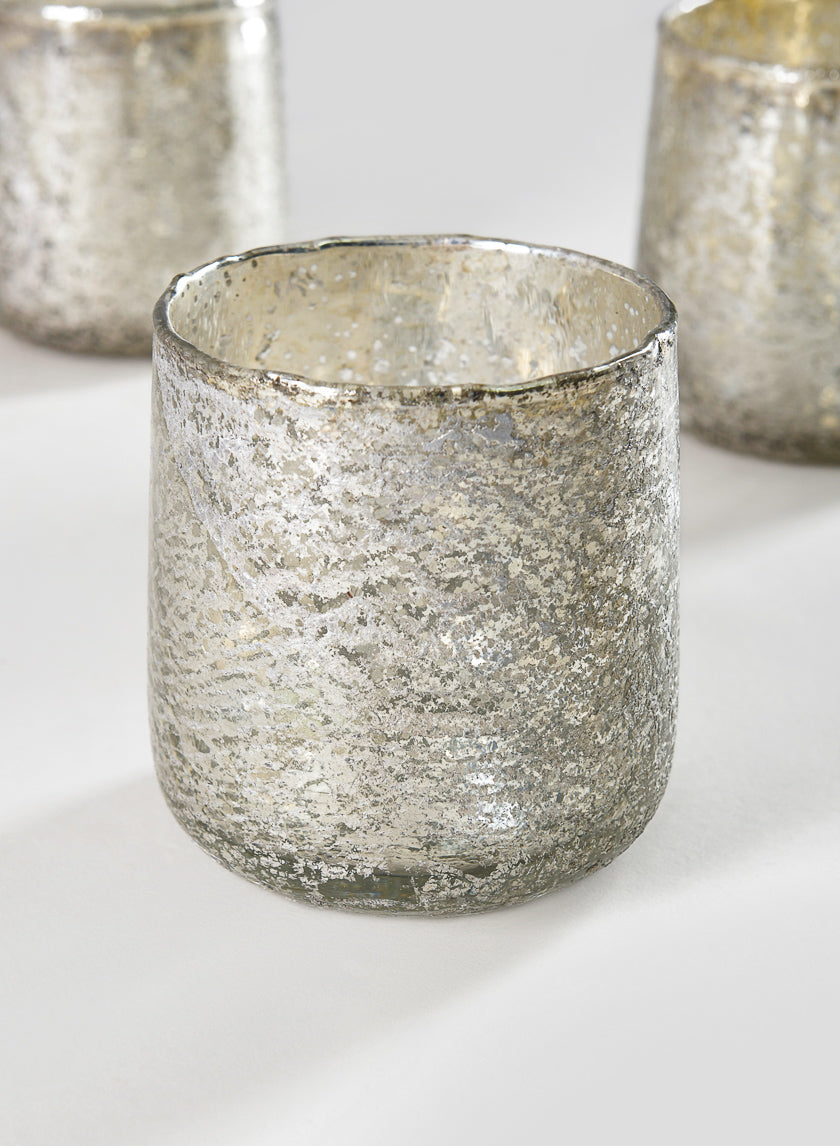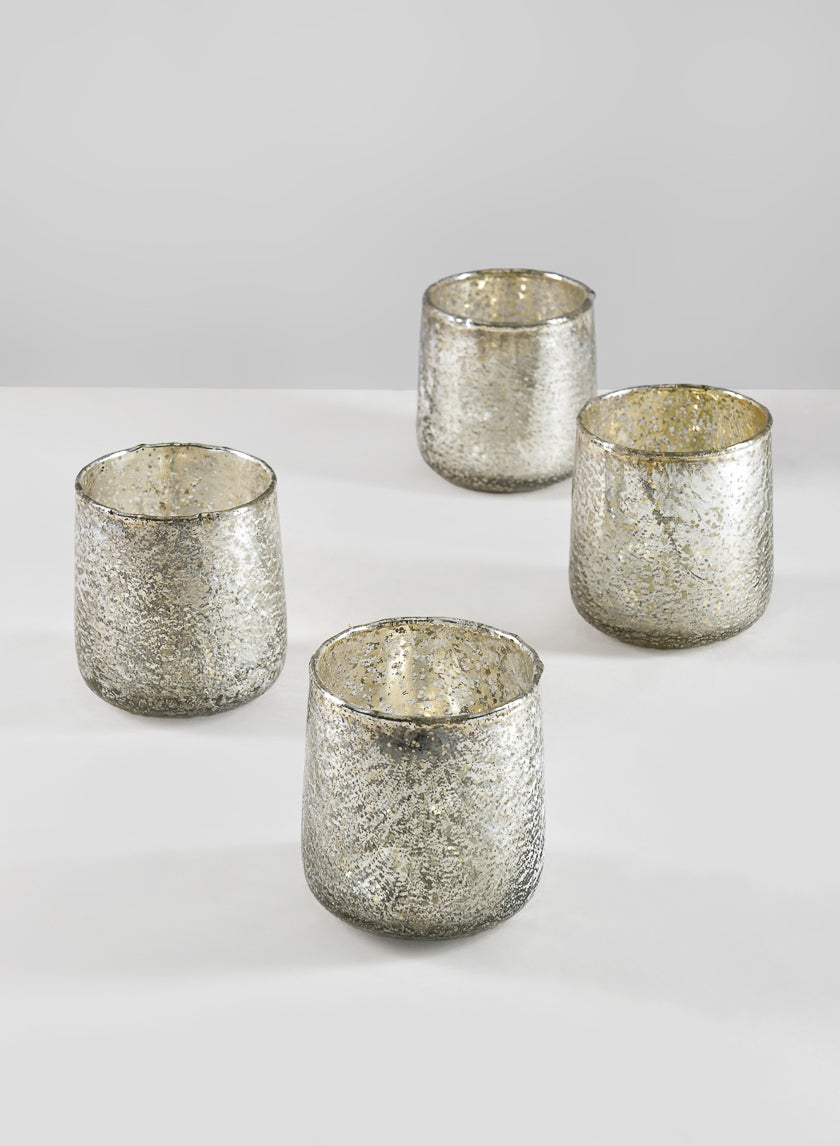 3.5in Tall Antique Platinum Glass Candle Holders, Set of 4