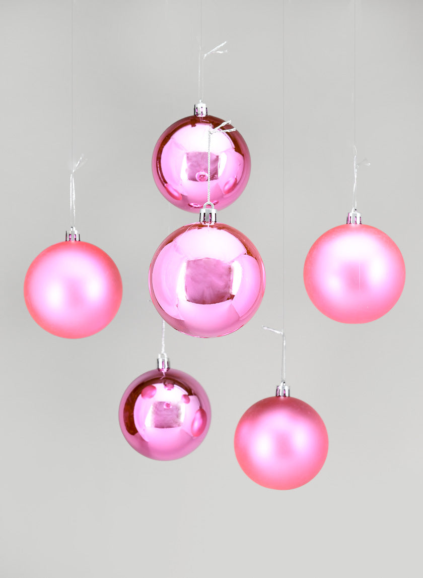 If you want to match the rest of your decor to these plastic pink ornaments, Jamali Garden has the supplies to help you complete a whole pink theme, even down to the branches on your Christmas tree. You can wrap your tree with pink LED lights, paint it with our pink glow spray paint, or garnish it with a rose gold bay leaf garland. Another option is to tie in your Christmas presents with pink ribbons or decorate flat surfaces with glittered pink trees.