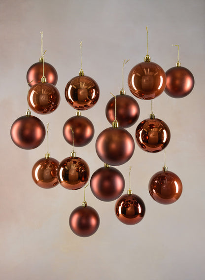 3in Round Pearl, Matte, Light & Shiny Copper Ornament Ball, Set of 16