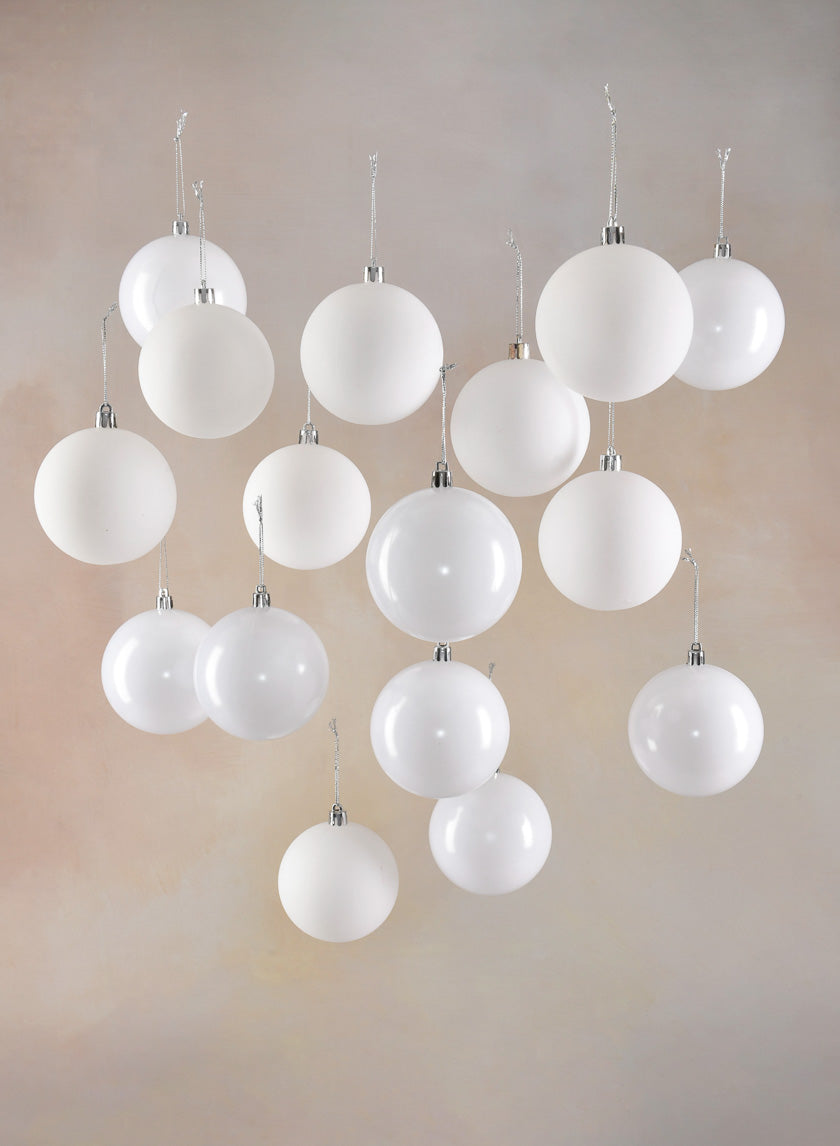 3in Round Pearl,Matte, Light, & Shiny White Plastic Ornament, Set of 16