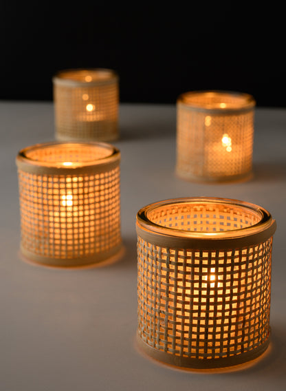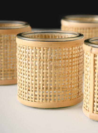 3in Tall Haiphong Cane Weaved Glass Cylinder, Set of 4