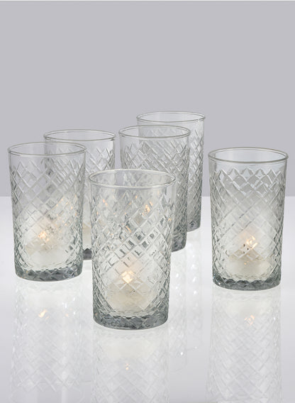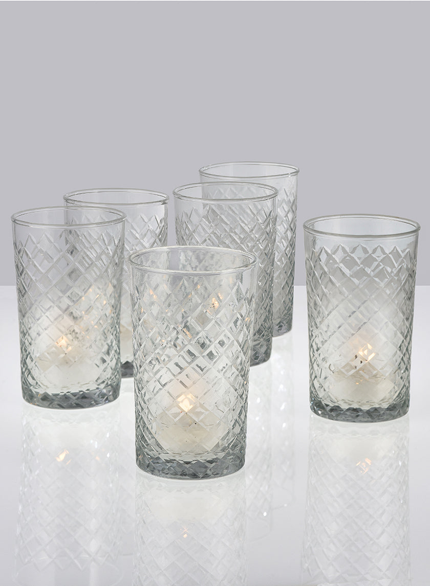 4 1/2in Tall Cut Glass Squares Votive Holder, Set of 6 Decor Jamali Garden