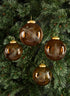 4in Round Almira Palm Amber Luster Glass Ornament, Set of 4
