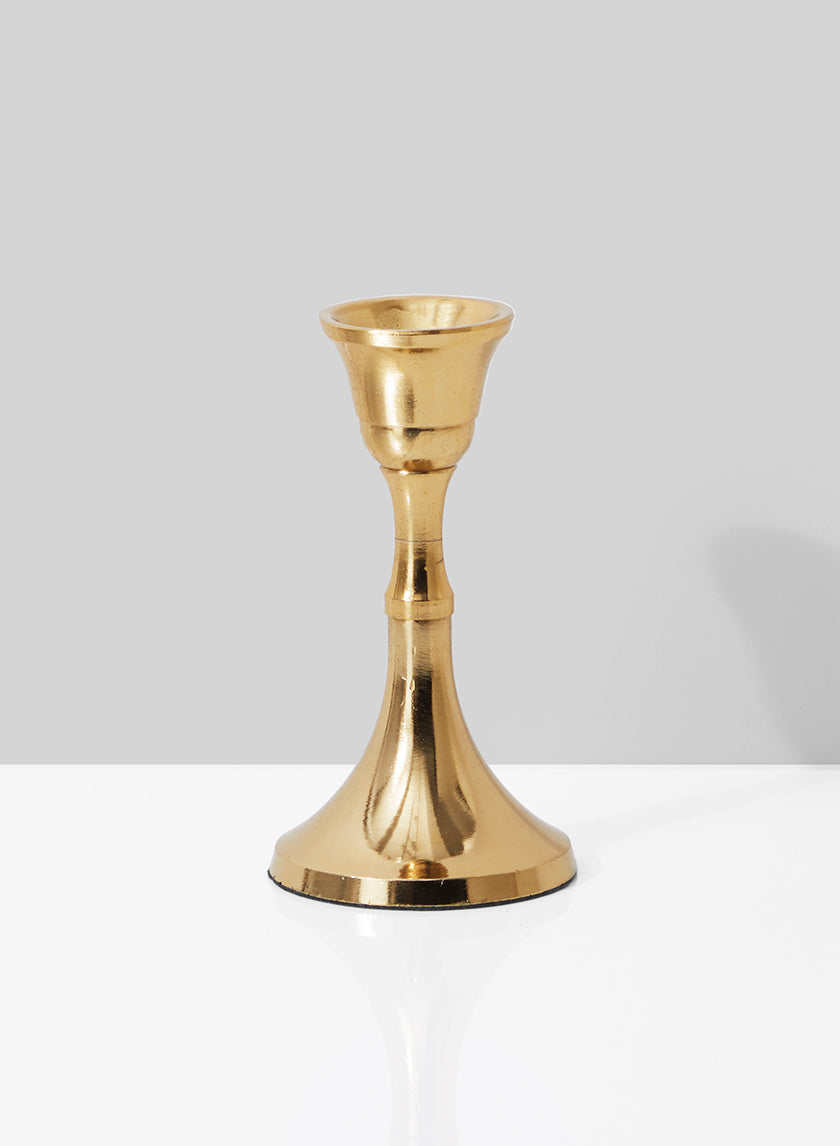 The candlestick is 4 1/2 inches tall, making it ideal for holding taller items like our white and ivory taper candles that range from 8 to 12 inches in length. Black taper candles also complement this candlestick well. If you have a black-and-gold-themed wedding or event, then this pairing would be the perfect choice.