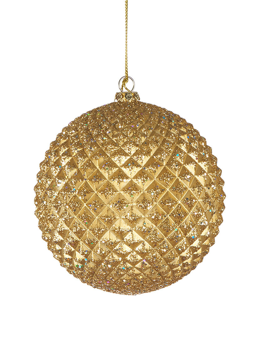 4in Round Gold Glitter Durian Ball Plastic Ornament