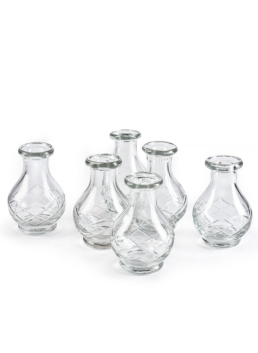 3.75in Tall Cut Work Clear Glass Bottle Vase, Set of 6