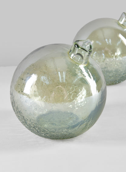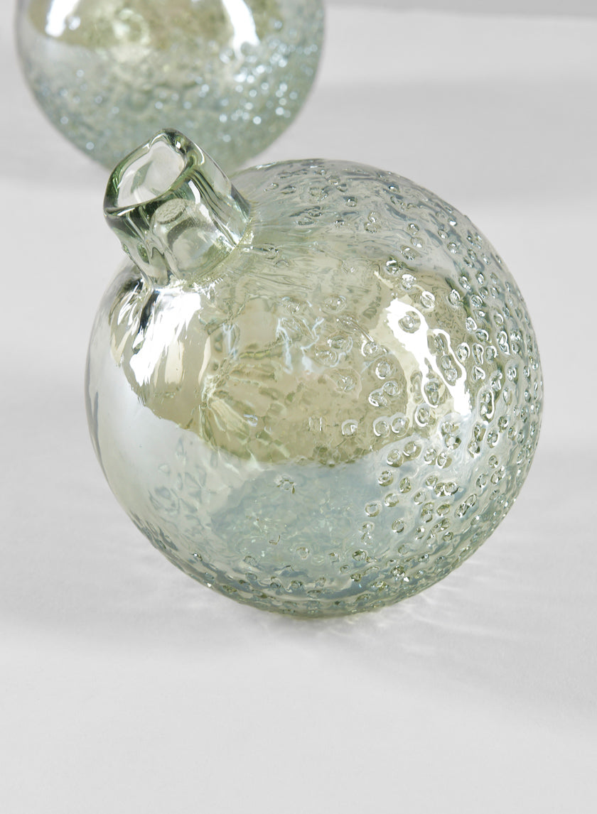 4in Wide Leila Tilted Speckled Luster Green Glass Ball Vase, Set of 2