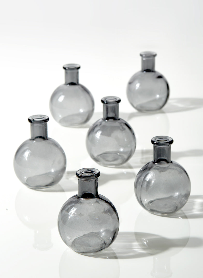 4in Tall Smoke Ball Glass Bud Vases, Set of 6