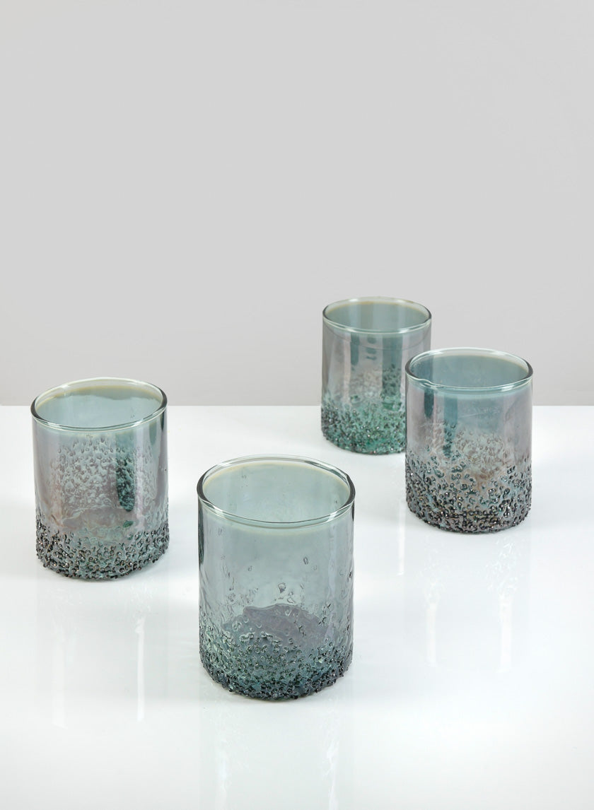 4in Tall Strasbourg Speckled Grey Luster Glass Cylinder, Set of 4