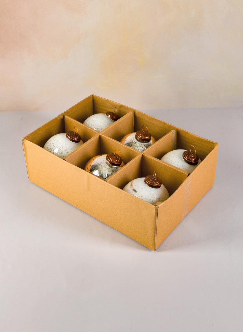 4in Round White & Silver Vintage Glass Ornaments, Set of 6