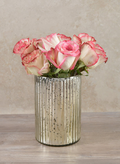 6in Tall Mewaar Old Silver Pleated Mercury Glass Vase