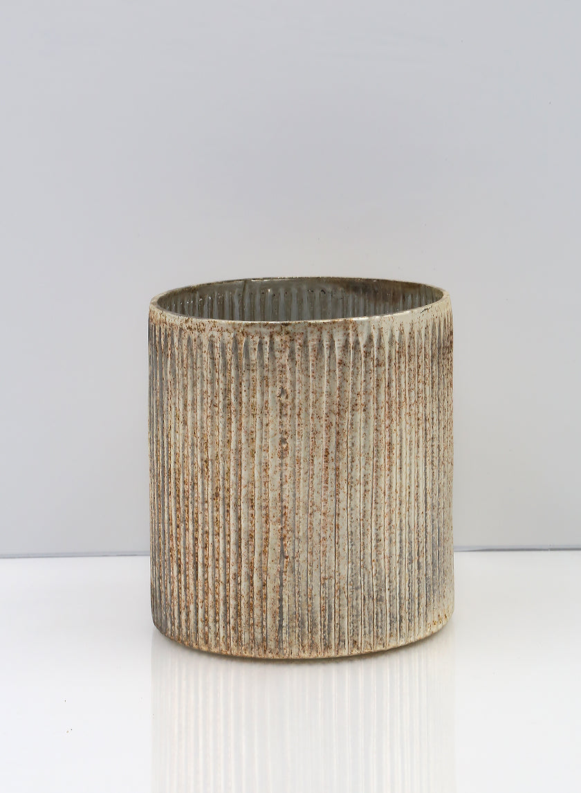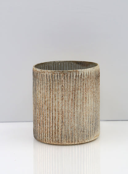 5.25in Tall Ribbed Rust & Silver Glass Cylinder