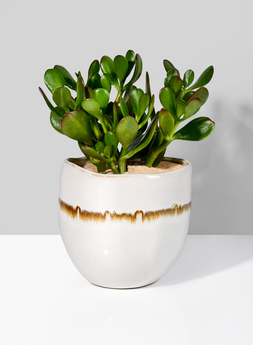The vase is shown here with a jade plant. Use it as a cachepot for your small potted plants and to cover up plain grower's pots.