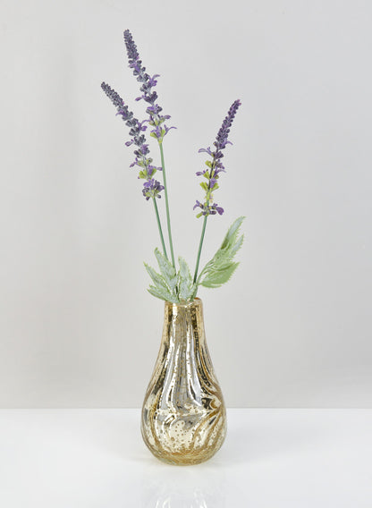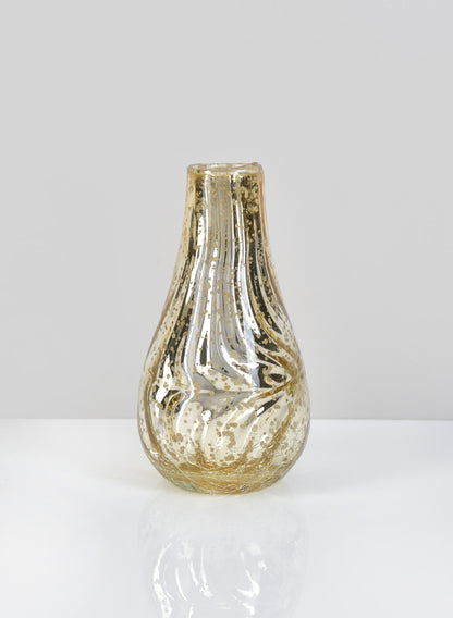 The 5 3/4-inch Gold Half Crackle Bud Vase is a delicate piece that brings a vintage charm to any setting. With a diameter of 3 inches and a height of 5 3/4 inches, this bud vase tapers gracefully from a wide base to a narrow top. It is crafted from mercury glass and features a distinctive half crackle design, giving it a textured, reflective appearance that catches the light beautifully. The gold finish adds a touch of luxury, making it ideal for displaying a few select stems in a sophisticated floral arrangement. Whether used as a standalone piece or grouped with other vases for a more dramatic effect, this bud vase is sure to captivate attention in floral shops, at weddings, or in any elegant space where a hint of refined beauty is desired.